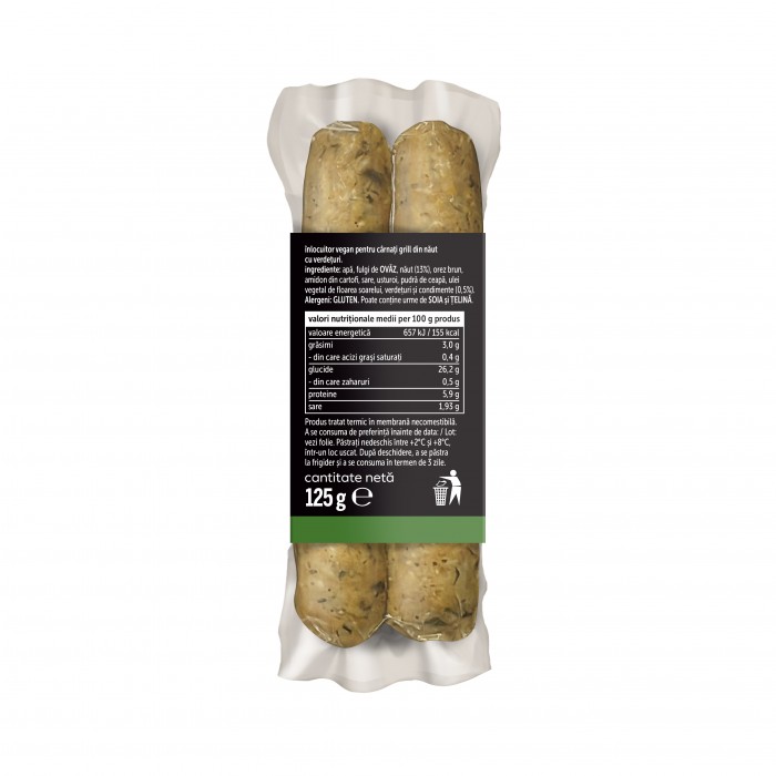 ingrediente: apă, fulgi de OVĂZ, năut (13%), orez brun, amidon din cartofi, sare, usturoi, pudră de ceapă, ulei vegetal de floarea soarelui, usturoi granulat, verdețuri și condimente (0,5%). Alergeni: GLUTEN. Poate conține urme de SOIA și ȚELINĂ.