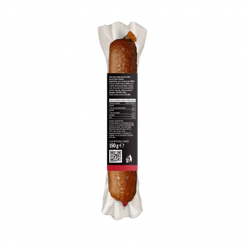 Acest sortiment picant aduce o notă de caracter oricărui preparat: oferă profunzime unei pizza gourmet sau o bază proteică robustă pentru platourile de aperitive. Gustul său intens afumat persistă delicat, transformând o gustare simplă într-o experiență gastronomică completă, susținută de un profil nutrițional de excepție